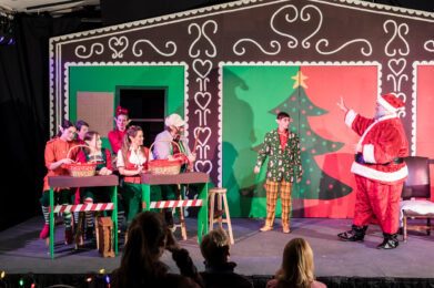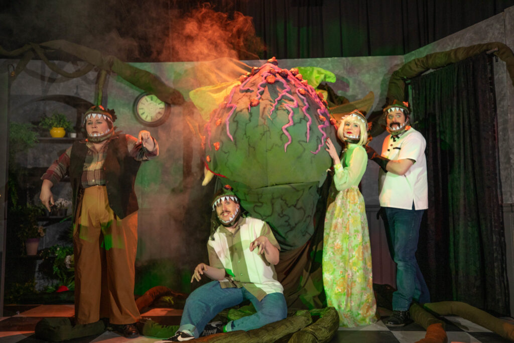 L-R: Maxine Bennett, Austin Schelstraete, Candise McMullin, and Craig Lindsay in Little Shop of Horrors, April 2024.