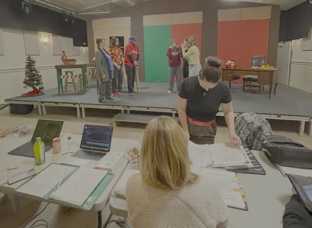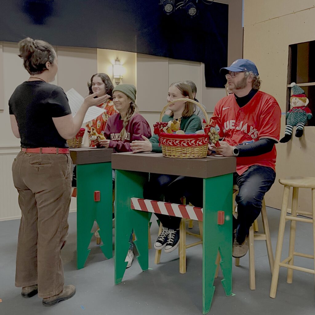 Director Pam Belanger and musical director Larissa Schumacher lead a rehearsal with the elves on October 29, 2025 at the Miners’ Union Hall.